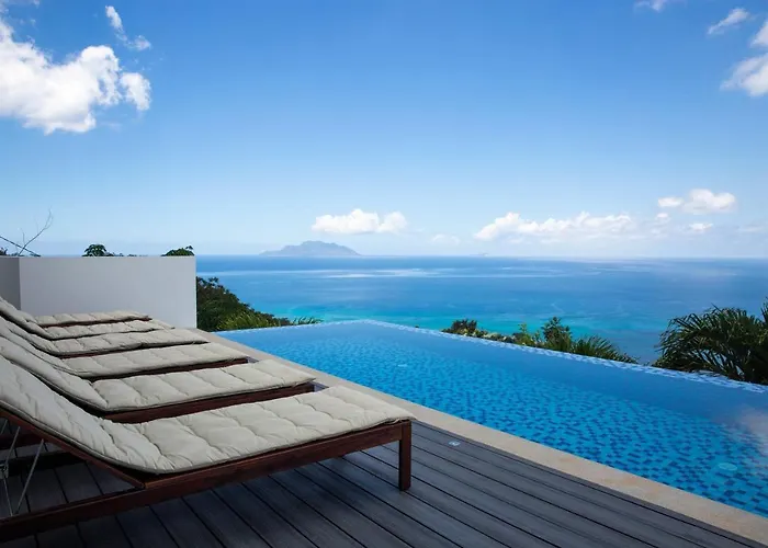 Situat la 10 minute cu mașina de la Anse Major, Paradise Heights Luxury Apartments & Villa Beau Vallon are o terasă și un balcon cu vedere spre piscină. Oaspeții se pot relaxa lângă o piscină înainte de a face o baie răcoritoare.